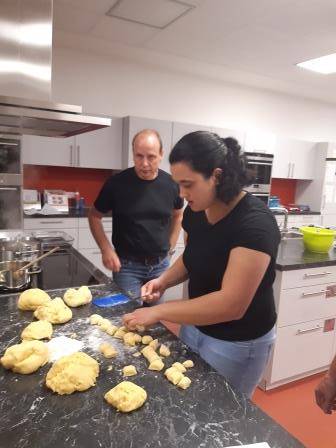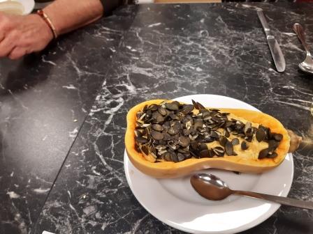 Unter der Leitung von Diätassistentin Sophia Müller hatten die Männer wieder jede Menge Spaß beim Zubereiten einer Maronensuppe, dazu Haferbrötchen und ein Butternut Aufstrich.