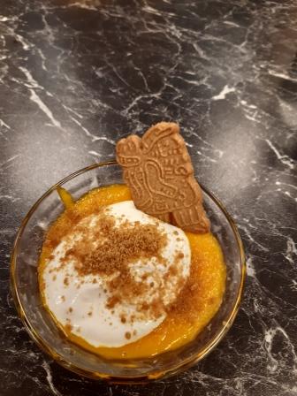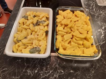 Außerdem gab es Kartoffelgnocchi mit Tomaten/Artischockenfruchtsauce oder Salbei-Butter-Sauce, ein Apfel-Kürbis-Mus mit Vanillequark rundete das völlig fleischlose Menue ab.