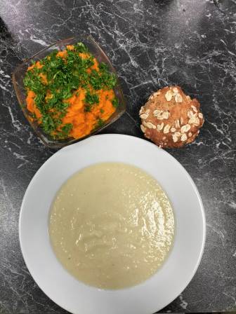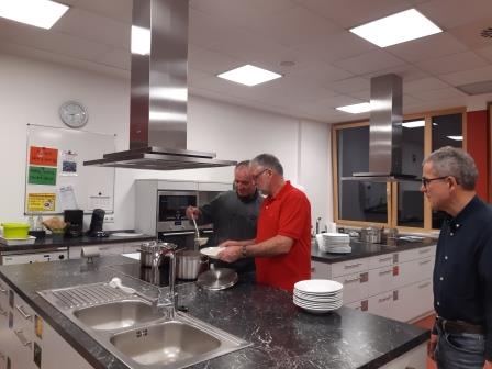 Unter ihrer Regie zauberten die Männer eine leckere Selleriecremesuppe mit Quarkvollkornbrötchen und einem scharfen Möhrenaufstrich.