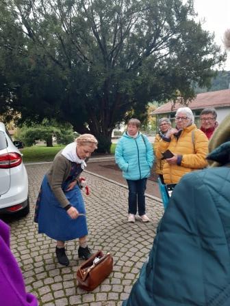 Am 28.09.2022 trafen wir uns zu einer Thementour mit der "Hebamme Sofie" in Haslach im Kinzigtal. Wir erfuhren viel über Schwangerschaften, Geburten, Hygiene, Krankheiten mit dem sich eine Landhebamme vor gut 100 Jahren konfrontiert sah. Es war nicht nur eine informative, sondern auch eine sehr lustige Tour. Gleichzeitig haben wir noch ein wenig über die Stadtgeschichte erfahren. Dazu habe ich drei Fotos separat gesandt. Danach klang der Abend im Gasthaus Blume in Schnellingen aus.