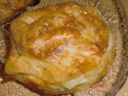Eine Rolle Börek Yufka Teigrolle (gibt es im Türken Laden) viereckige Platten. Vorsichtig auseinander rollen. Es sind 16 Teigplatten, diese in der Mitte vorsichtig durchschneiden. Immer 2 Teigplatten entnehmen und mit Wasser bestreichen, von der Füllung drauf geben und locker zu einer Schnecke aufrollen. In eine mit Backpapier ausgelegte Springform legen und mit dem Öl - Milch Gemisch bepinseln, mit Sesam und evtl. mit Kreuzkümmel bestreuen.