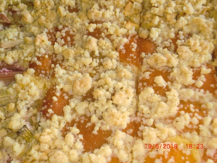 alles zu gleichmäßigen Streuseln verarbeiten, zur Seite stellen. Danach auf dem Kuchen, auf den vorher das Obst gelegt wurde, verstreuen. |