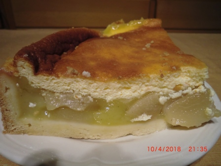 | 1 Becher Sauerrahm | vorsichtig unter die Eigelbmasse rühren, danach den Eischnee vorsichtig mit dem Schneebesen unter die Masse heben, bis er gleichmäßig untergehoben ist. Anschließend den Guss auf den heißen Kuchen gießen und nochmals 25 Minuten weiterbacken bis er schön braun ist. |