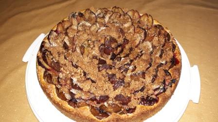 alles zusammen mit den Bröseln zu Streuseln verarbeiten, kalt stellen Danach auf den Zwetschgen verteilen |