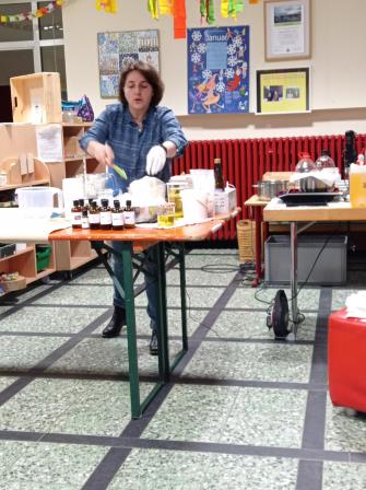 An der Halle erwartete uns ein Überraschungsgast: Frau Christiane Wangler, die neu gewählte Präsidentin des südbadischen LandFrauenverbandes, nahm das Treffen zum Anlass, sich persönlich vorzustellen, Infos des Verbandes zu geben und Kontakte zu knüpfen.